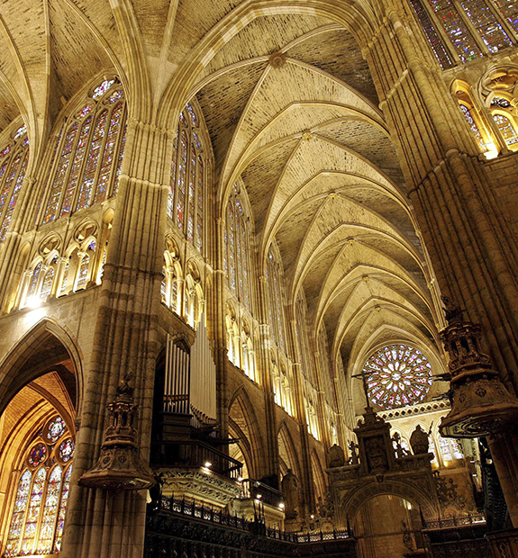 La iluminación nocturna de la Catedral de Santa María destaca aún más si cabe al caer la noche. La iluminación nocturna de las vidrieras (desde las 00:00 horas hasta las 02:00 horas, festivos y fines de semana) ofrece una nueva visión de la Pulchra Leonina, que es todo un espectáculo visual para quien la contempla.